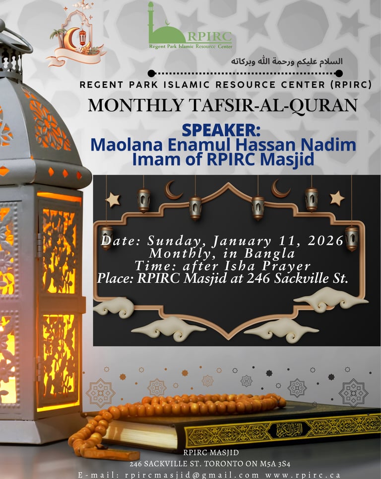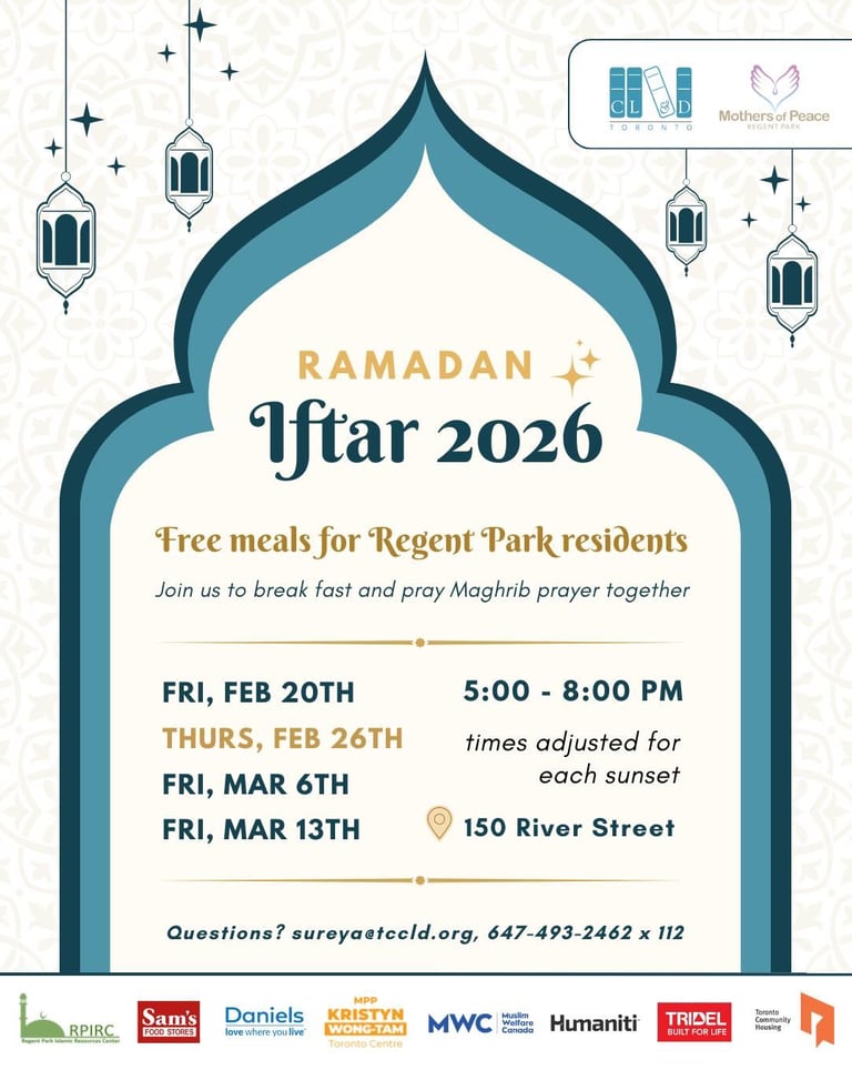 Regent Park Islamic Resource Centre (RPIRC) is a non-profit organization dedicated to serving the community through a wide range of inclusive and impactful programs that address spiritual, educational, social, and civic needs. Rooted in service and compassion, RPIRC supports individuals and families of all backgrounds by offering religious services, youth engagement initiatives, educational workshops, cultural events, and social support programs that promote well-being and unity. By collaborating with local partners and responding to the evolving needs of the Regent Park neighborhood, RPIRC works to strengthen community bonds, empower youth, assist newcomers, and foster mutual understanding. As a community-driven non-profit, RPIRC exists not only as a place of worship, but as a hub of support, learning, and positive social change.